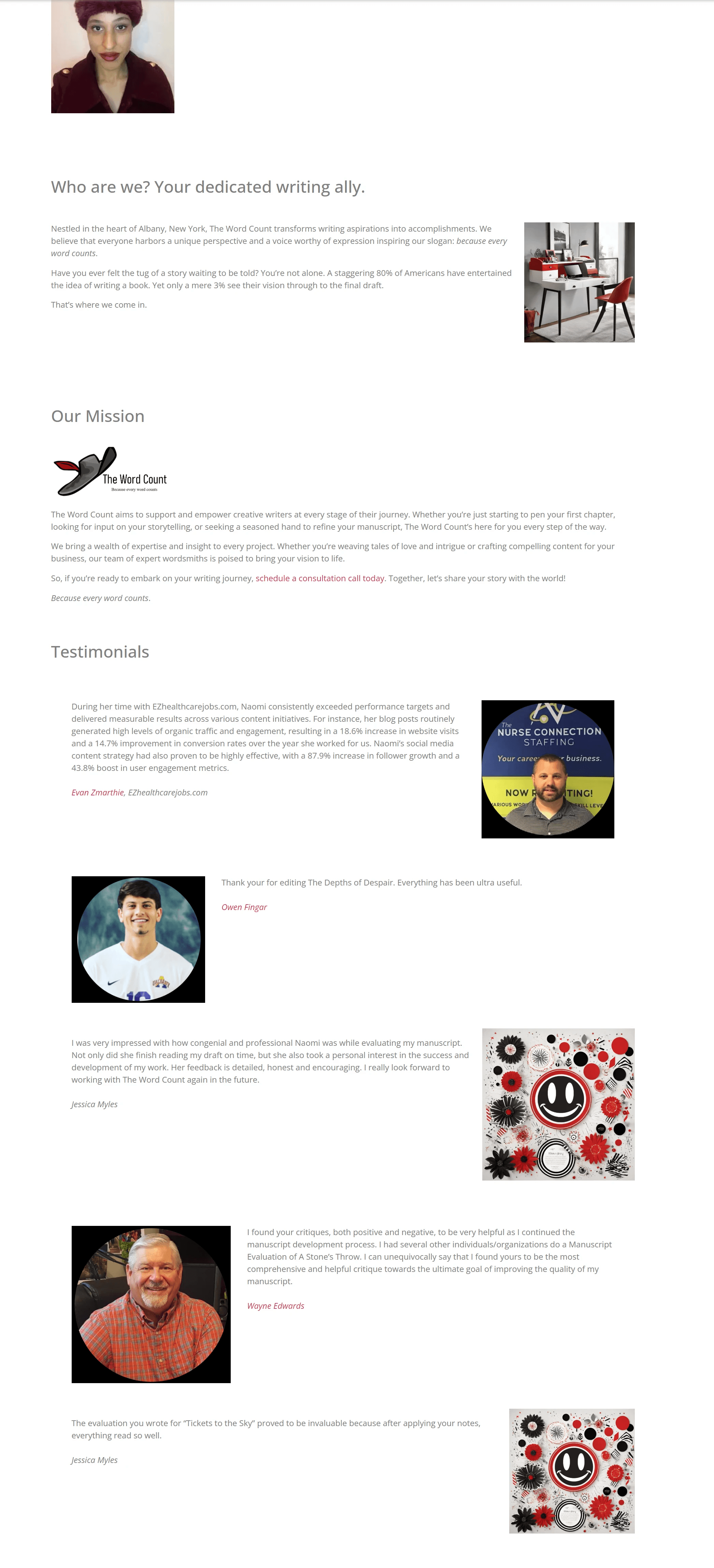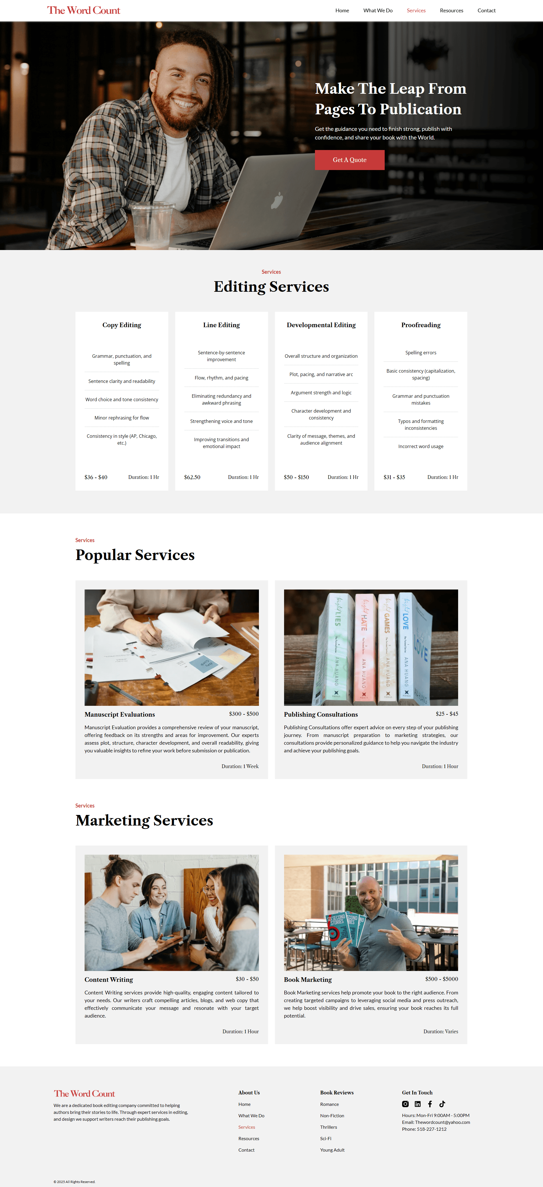 clearly define and position The Word Count’s services so first-time visitors immediately understand what is offered and how it supports their publishing journey?